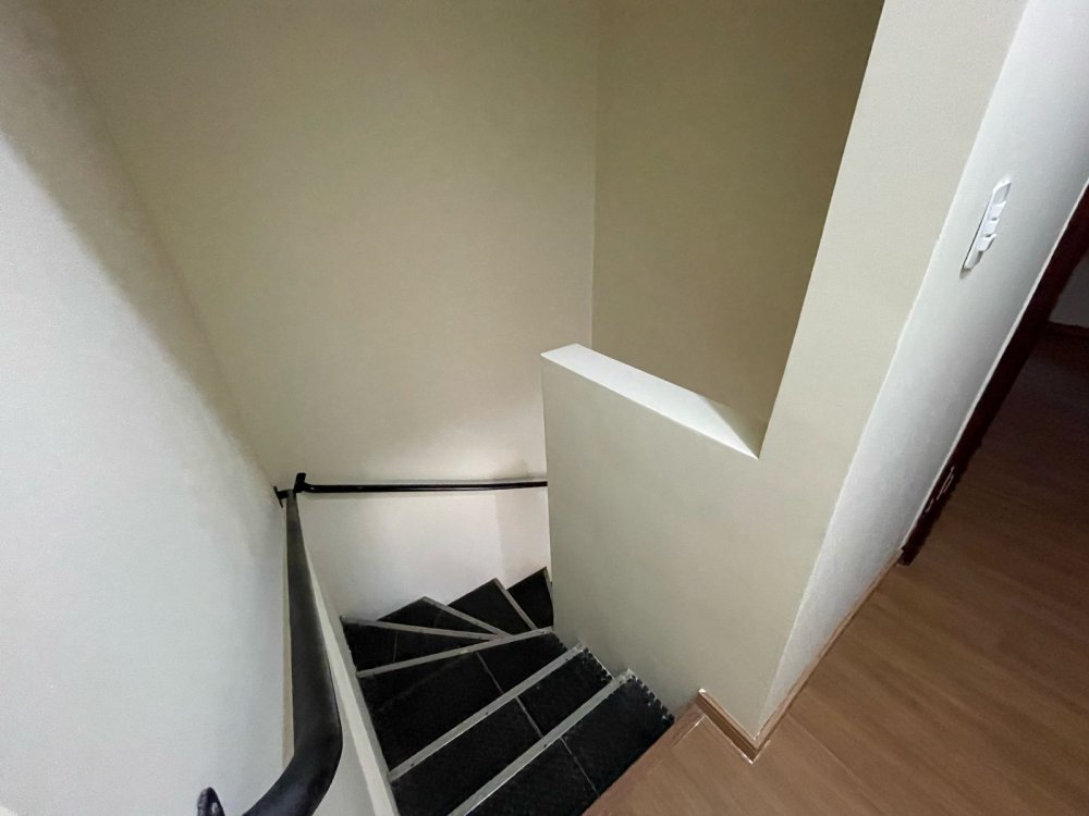 Escadaria com iluminação e corrimão de ferro;