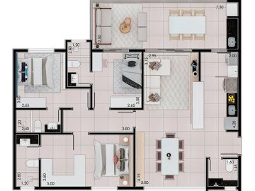 Apartamento possuem 3 suítes (sendo 1 com closet), sala de jantar, estar e cozinha integradas, vista para o Parque do Povo, 2 vagas na garagem e área de lazer com salão de festas, espaço kids, academia, piscinas (uma coberta), espaço pet e muito mais!