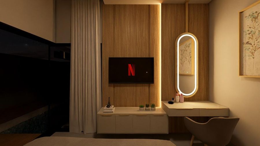 Será entregue com: - Carregador para carro elétrico - Persianas automatizadas - Aspiração central - Paisagismo da Vitória Régia - Irrigação automatizada - Energia fotovoltaica -Infraestrutura de Automação e Sonorização Wiser.